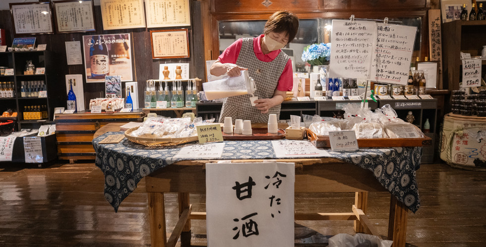 It does not seem like much from the outside, but aside from a cozy shop and tasting area, the back stretches into a full-on museum with both historical pieces but also letting visitors see the tank in which their sake is aged listening to music! 🎶